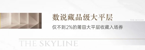 瞰莆田楼市版图,大平层更是稀缺。城厢区在售新房约4192套(数据来源:克瑞而2022年5月),而在万达板块,约200㎡以上的大平层产品仅融创建发|天际可选择,仅106套。位于核芯地段的项目已是难得,核芯地段的大平层更是稀缺,仅不到2%的藏品级大平层,注定少数时代人物才能拥有。