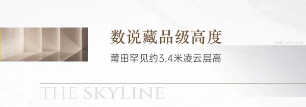 基于对莆田高净值人群居住需求的深入洞察,融创建发|天际以高于普通住宅层高的标准,打造约3.4米凌云层高,营造朗阔的居住排场,致献城市层峰人物。