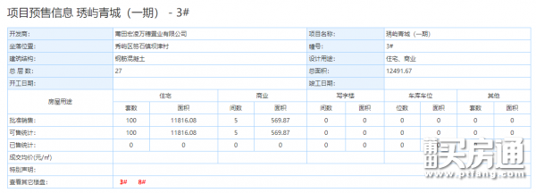 据悉,3#楼为26层一层4户结构,共100套房源,5间商业,住宅户型面积为101.42-136.15㎡,预售申报单价:7166-10836元/㎡。8#楼为17层一层4户结构,共68套房源,户型面积为130.6-140.78㎡,预售申报单价:7616-10896 元/㎡。今年三季度热销8亿,冠领秀屿楼市。新品面积约101-142㎡板式小高层10月27日启动预约,板式小高层、万达黄金铺、全城火热争藏。
