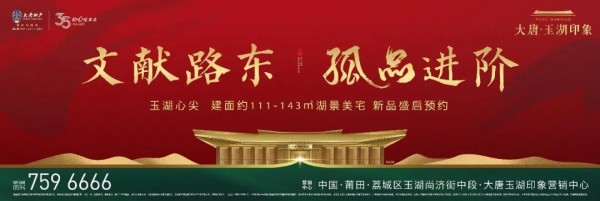 大唐·玉湖印象:1、本项目推广名为“大唐·玉湖印象”,本项目备案名为大唐玉湖观邸,开发商为莆田唐玉房地产开发有限公司;2、高定孤品:指玉湖项目交通便利可快速到达莆田市区,具备较佳的居住环境和配套,非唯一性、极限用语;3、玉湖湖景:指大唐·玉湖印象与玉湖公园直线距离1500米,部分户型可瞰湖,具体以实景为准。