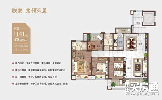 比如边套建面约141㎡的四房,足以满足改善族三代同堂。