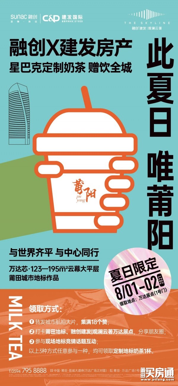 融创建发|观澜云着联合星巴克的“夏日限定”,为地标而来。参与互动,领取星巴克定制奶茶,一起为世界莆田的新地标打call!