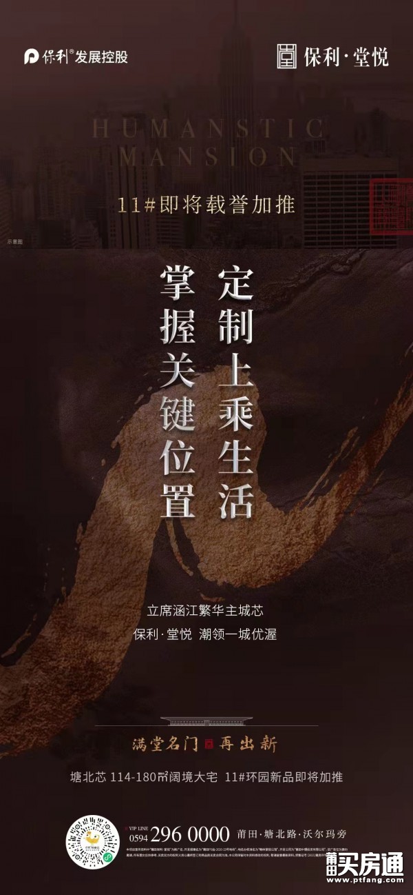 主推户型: 塘北芯,建面约114-180m²阔境大宅,园心新品11#载誉加推