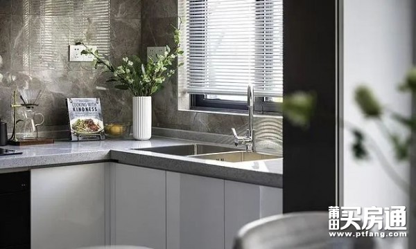 “U”型设计功能分区明确,空间利用率高,操作流程顺畅,只需小幅的转身和移动即可完成整个“洗、切、炒”等操作流程,多人共同操作,互不干扰。厨房北侧开窗,保证了通透对流,同时还能观赏园林景致,给下厨一份好心情。