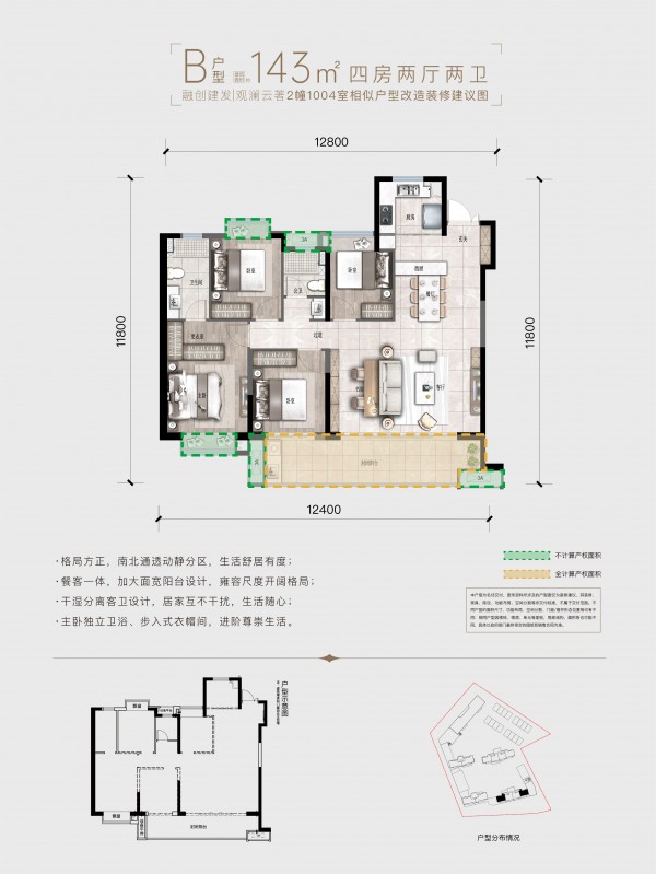 融创建发·观澜云著在户型上也花了不少心思,建面约123-197㎡云幕大平层实现了户户南北通透,将采光通风最大化,全天候不间断的室内外空气循环,保障房间呼吸系统的通畅。