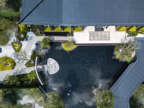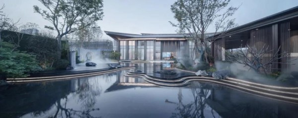 营销中心整体设计以东方礼制为出发点,以中为轴,通透、豁达,表现出“中正平和”的哲学思想。在建筑上以现代的材料与设计手法,演绎古代建筑的传统内涵,塑造出宁静与尊崇的气场。