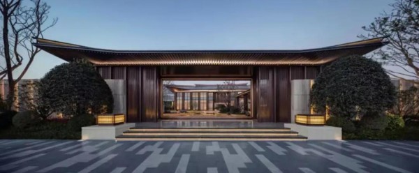 从建筑格局,到引光入室,至黄金尺度,处处皆是生活和光线的共鸣;在光的丰富层次中,重返美与暖的归心意境。光线在建筑格局上的展现,可以将结构展现得更为美妙;开放的门洞,把中场庭院里的风景框成一幅画,从门前看去,不禁对内部空间产生好奇与期待。光的照射投射在建筑上、虚实映衬里,金色的光线在庑殿顶上、在幕墙上、在格栅上,简洁的形体展现出纯粹的美。