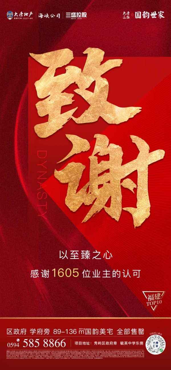 感谢1605位业主的认可