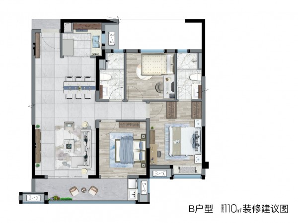 例如建面约110㎡户型,三开间采光、户型方正、使用率高,还能动静分区。除了采用“边厅”设计,客厅和阳台也更加宽敞,屋内阔绰感拉满之余,孩子需要的阳光、星空每天都能满屋。