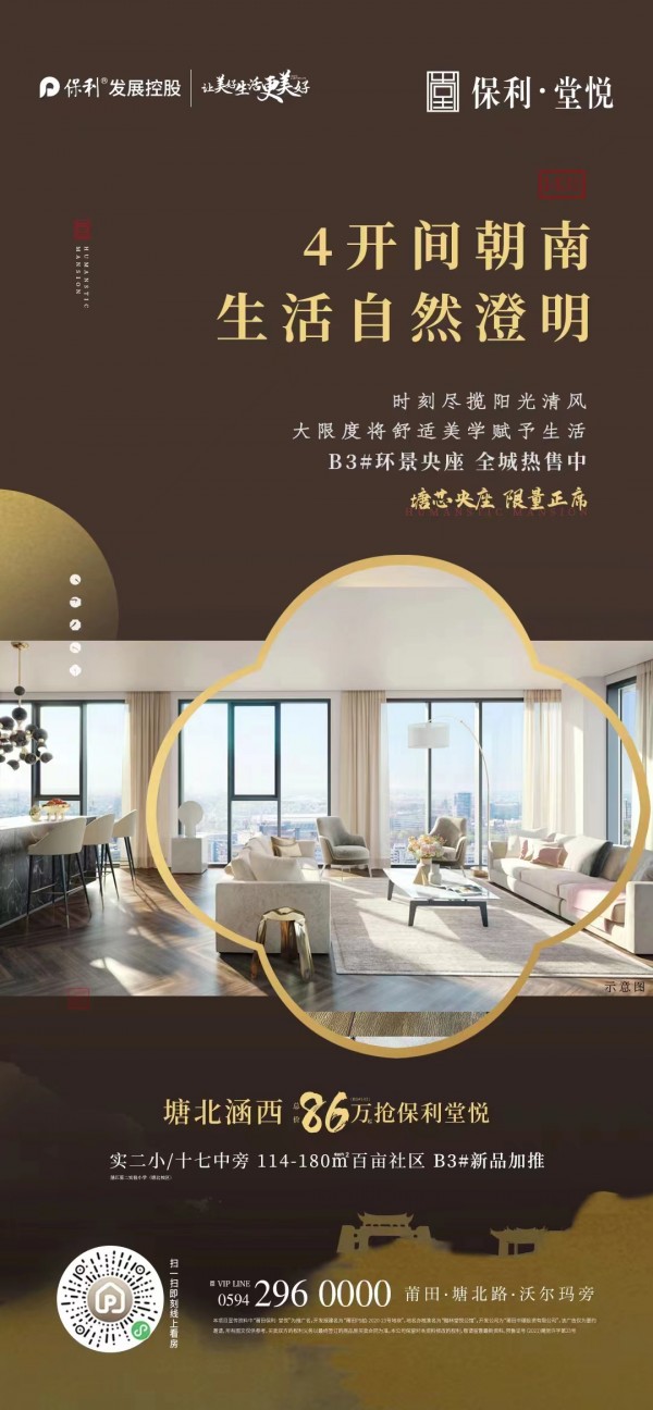 主推户型: 塘北芯,建面约114-180m²阔境大宅,园心新品11#载誉加推